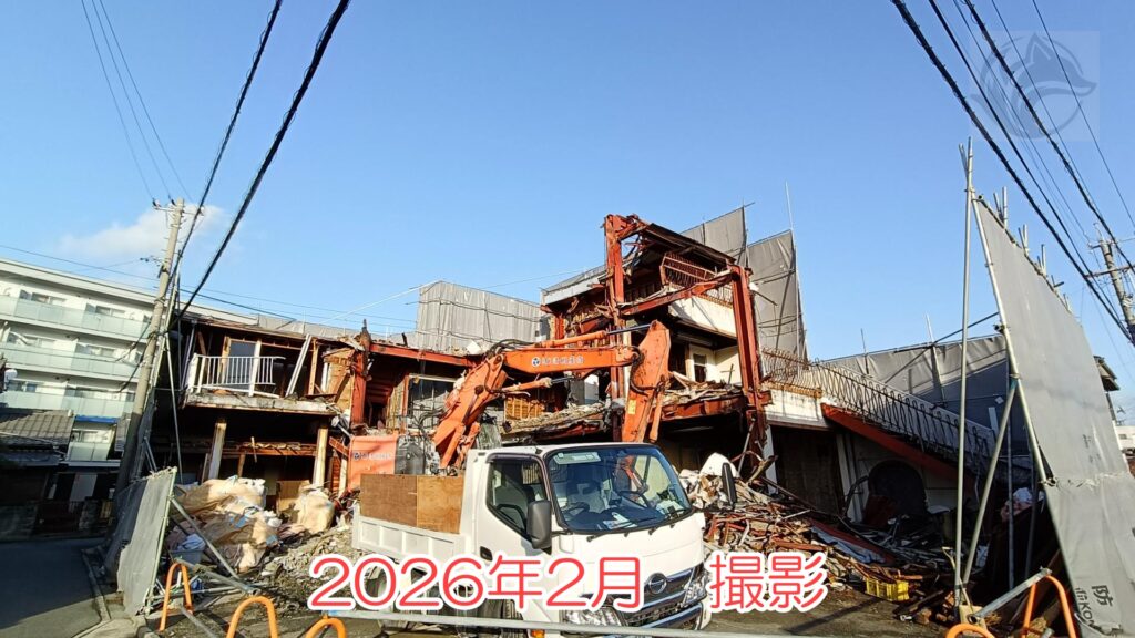 【解体されとる】諏訪町駅近く、線路沿いのめっちゃ古そうなテナントビルが解体されとるー!次は何か出来るかな?