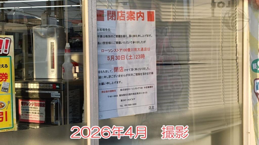 【閉店情報】豊川市の店舗がゼロに…「ローソンストア100 豊川南大通店」が閉店!ローソンの新業態「Lミニマート」にはなれず?
