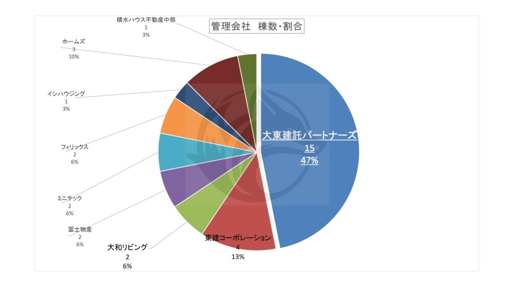 上記表の管理会社別「棟数・割合」をグラフ化。