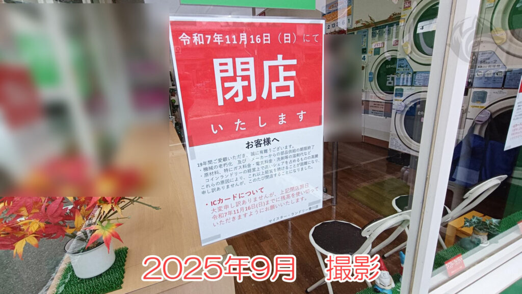 【閉店情報】こんなところにも物価高の波?下野川町のコインランドリー「マイスター・ランドリー」が閉店!2025年11月16日まで。