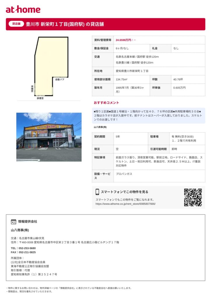 場所は「豊川市新栄町1丁目17 1F-B」です。