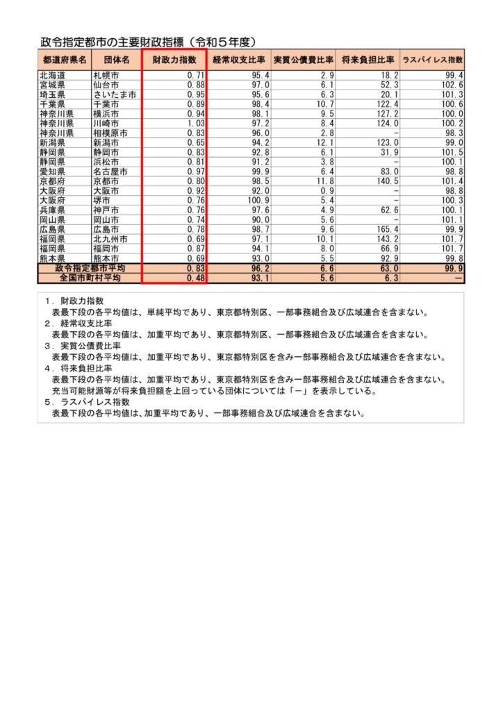 2025年の財政力指数は0.79715(約0.79)なんですが、実は政令指定都市・地方中核都市である京都市や神戸市と同じレベルの財政力らしい。
