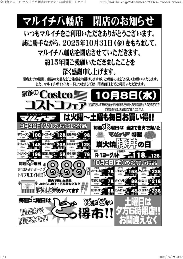 マルイチ八幡店にお世話になった方は、閉店前に行ってみてはいかがでしょう。