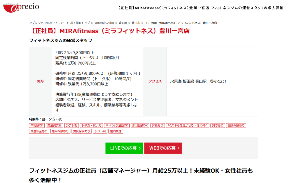 ミラフィットネスの公式サイトで告知されており、indeedでも募集が出てました。