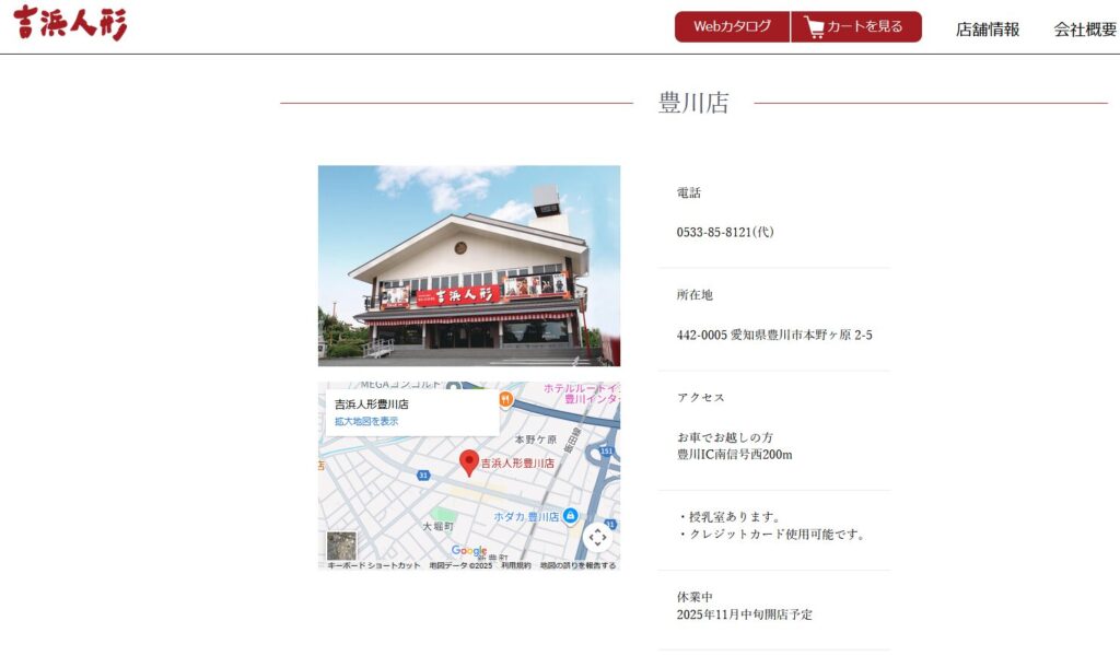 また、ウィキペディアで「吉浜人形」と調べてみると、同じように”2025年(令和7年) 豊川店 閉店”って書いてあります。