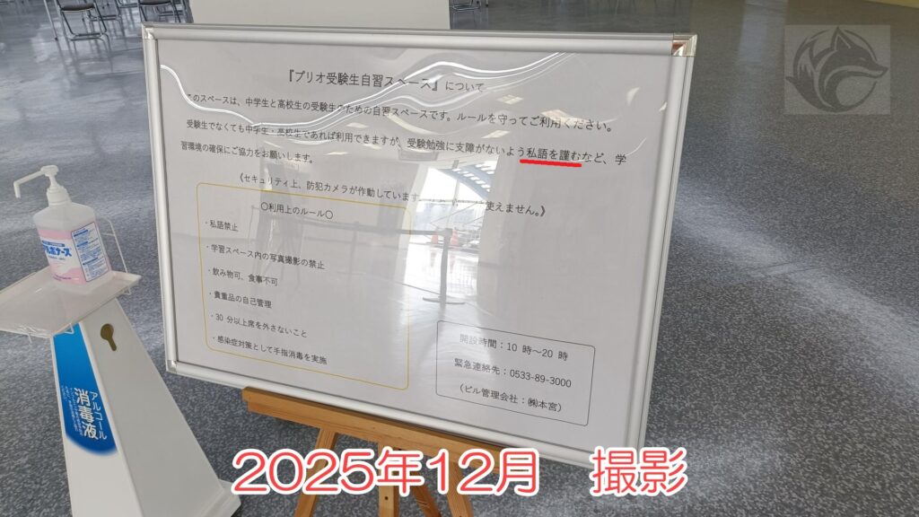 でも一つ気になることがあって、この「プリオ受験生自習スペース」は一時的な場所なのかな??