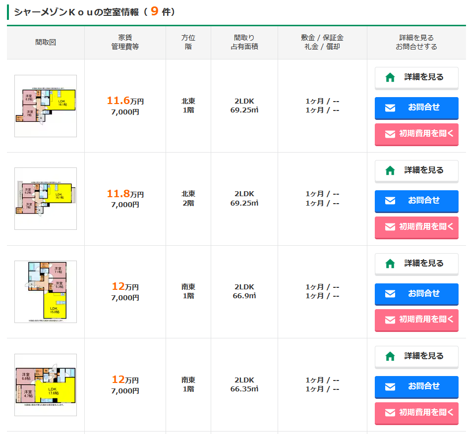 ちなみに物件情報はこんな感じ。