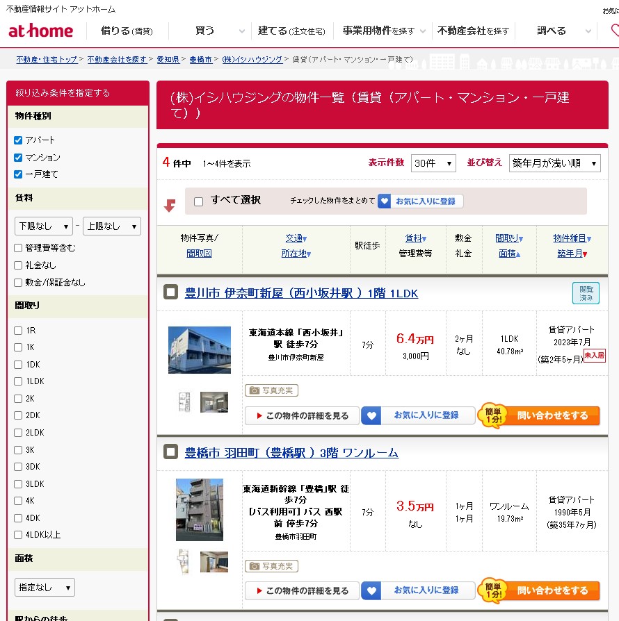 11月は5棟の新築物件が豊川市に投下されました。