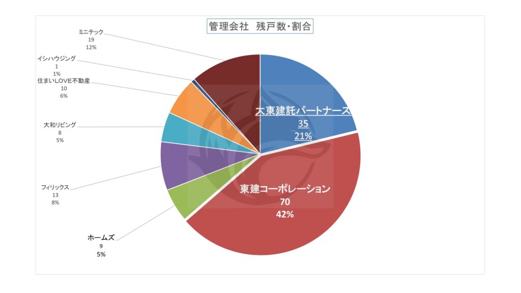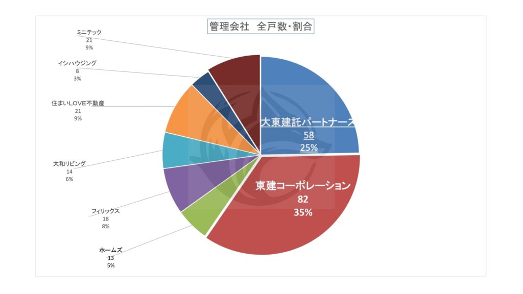 上記表の管理会社別「全戸数・割合」をグラフ化。