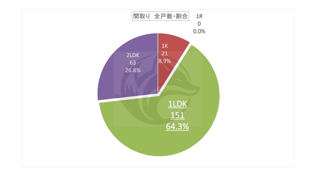 上記表の間取り別「全戸数・割合」をグラフ化。