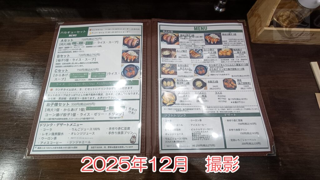 そんな長谷川餃子の詳細はこんな感じ。