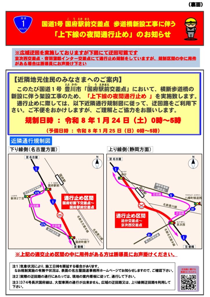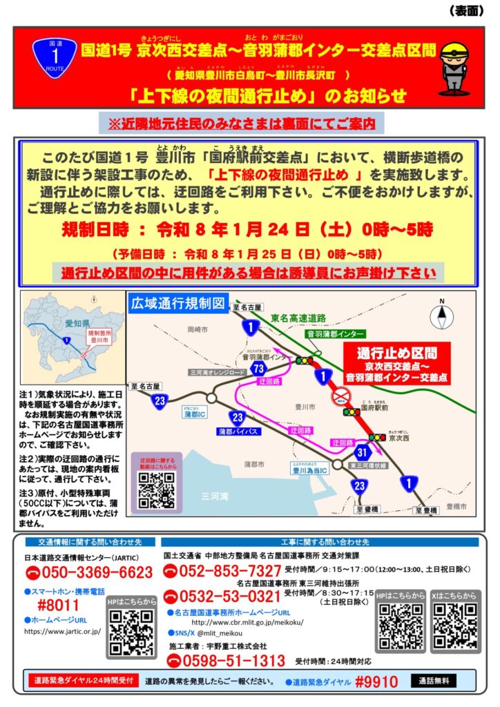 【踊らない捜査線】国道1号線、封鎖します(夜間限定)|1月24日(土)0~5時