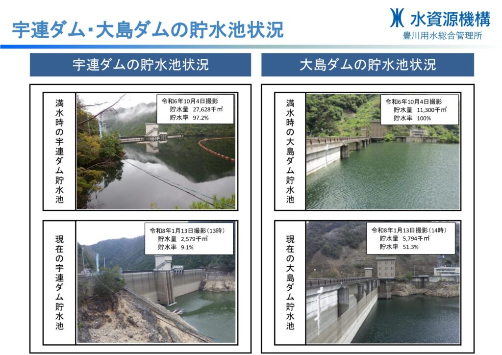 2026年1月現在、宇連ダムというメインタンクが枯渇しているため、サブタンクでなんとか維持している状態です。