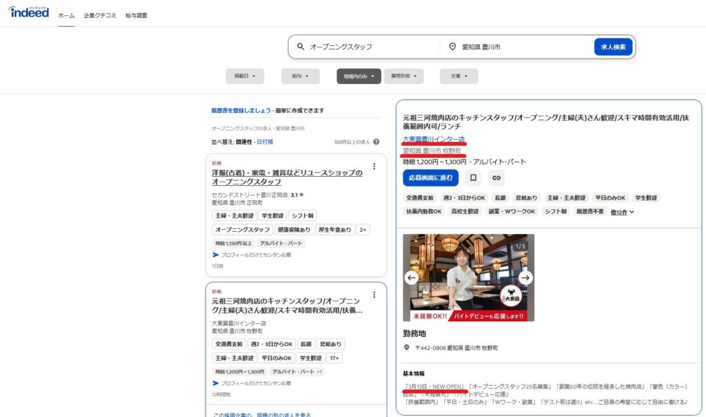 いやね、求人サイトindeedで「牧野町に出来る大東園、オープニングスタッフ募集します!」ってのを見つけたわけ!しかも来月(2026年3月)に!