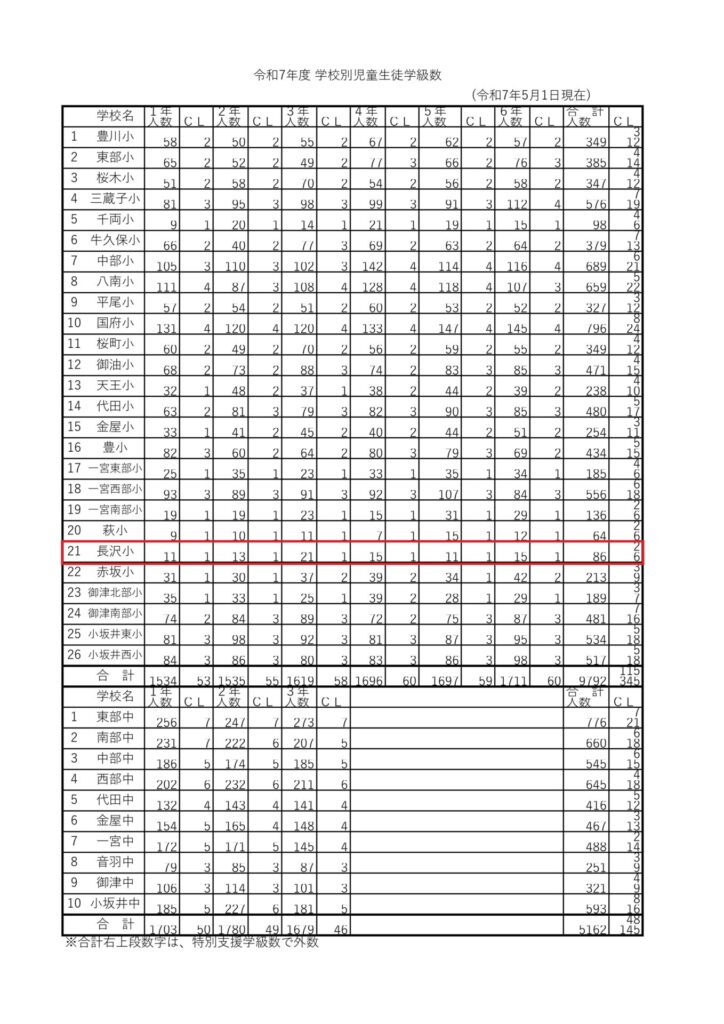 ちなみにですけど、令和7年度、長沢小学校の全校生徒数は何人だと思います?