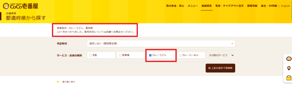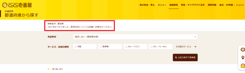 愛知県内のCoCo壱番屋のうち、約19%しかカレーラーメンの取り扱いがないのだ…!