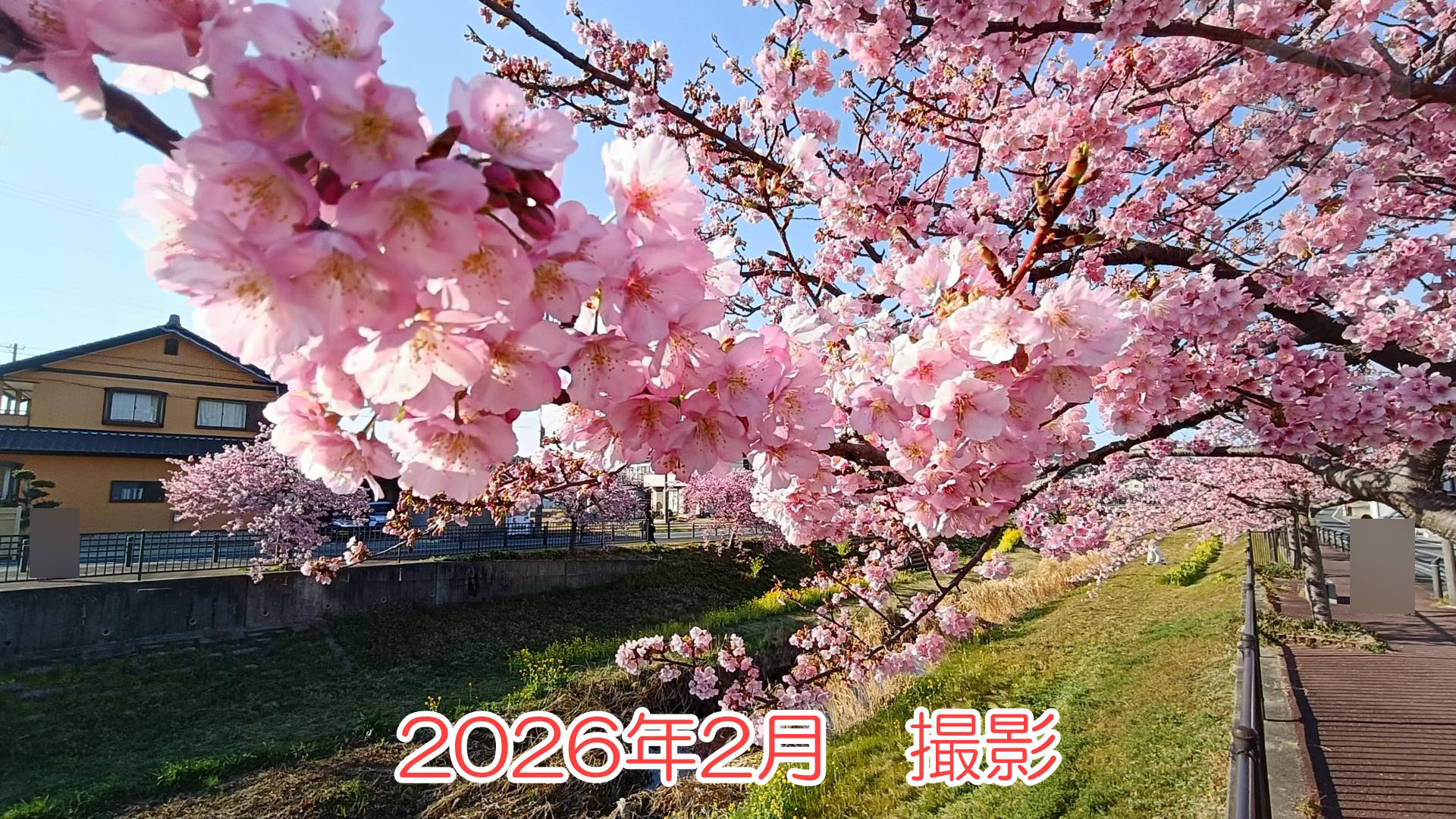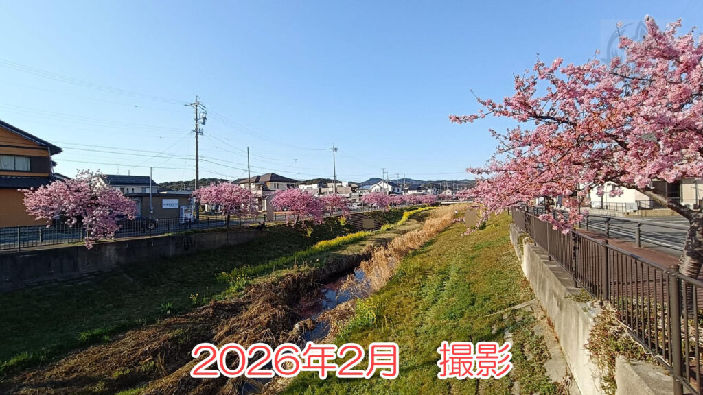 【2026年の河津桜】今年も良い感じ!西古瀬川の河津桜「八幡桜」が春を告げる!満開は3月3日頃だってさ。