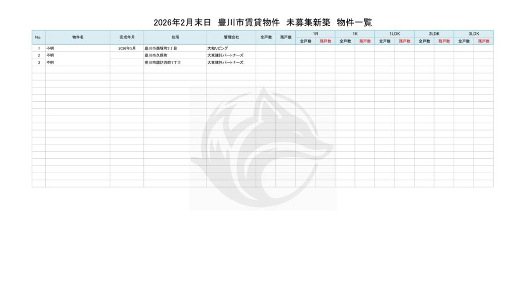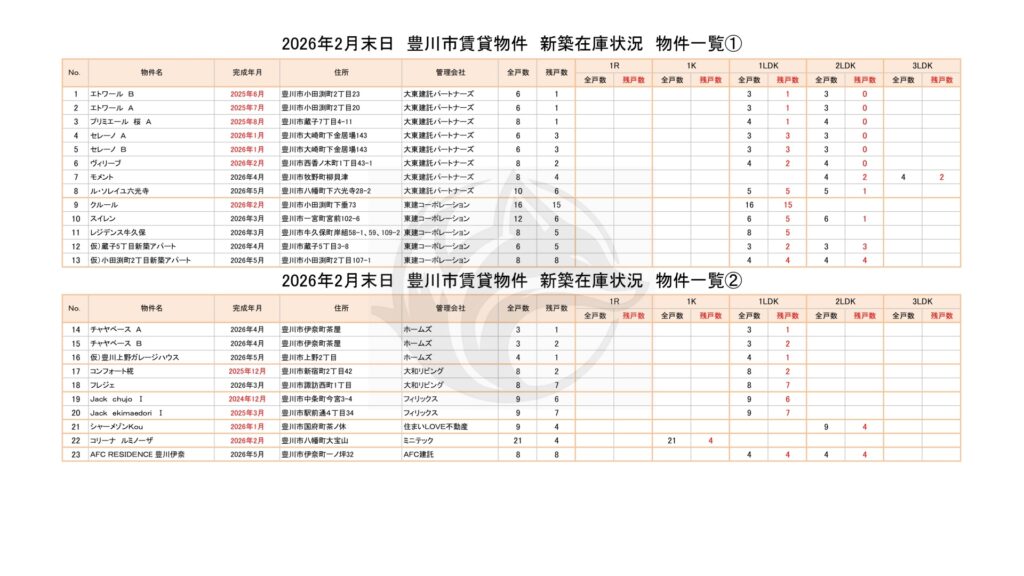 2026年2月末日 豊川市賃貸物件 新築在庫状況 物件一覧