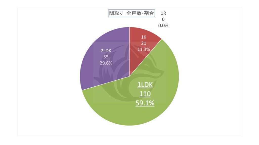 上記表の間取り別「全戸数・割合」をグラフ化。