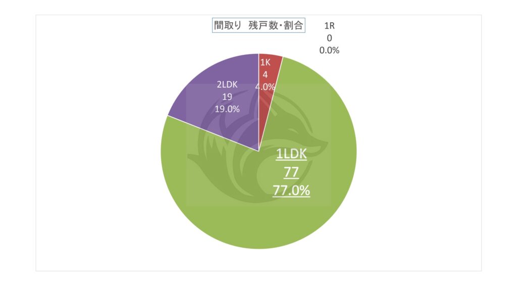上記表の間取り別「残戸数・割合」をグラフ化。