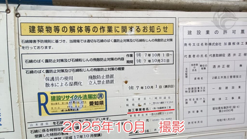 2025年10月に解体しているのを知って、現地確認しに行ったんだけど、姫街道側の建物と反対側の建物とで解体業者が違ったんだよね。