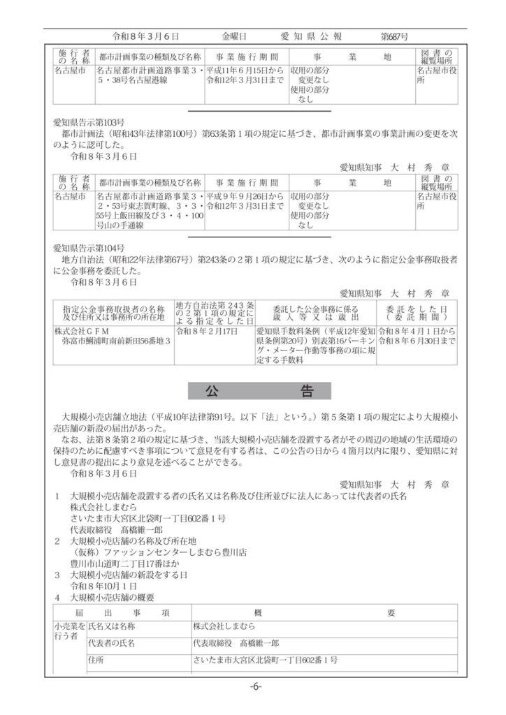 【愛知県豊川市】しまむら(さいたま市大宮区北袋町1ノ602ノ1)は、豊川市で「(仮称)ファッションセンターしまむら豊川店」の出店を計画している。新設日は10月1日とした。