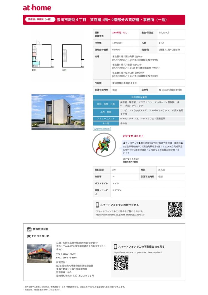 で、そこを誰かが買ったんだと思いますが、テナントを建てて、出店者を募集中って感じです。※2026年3月現在