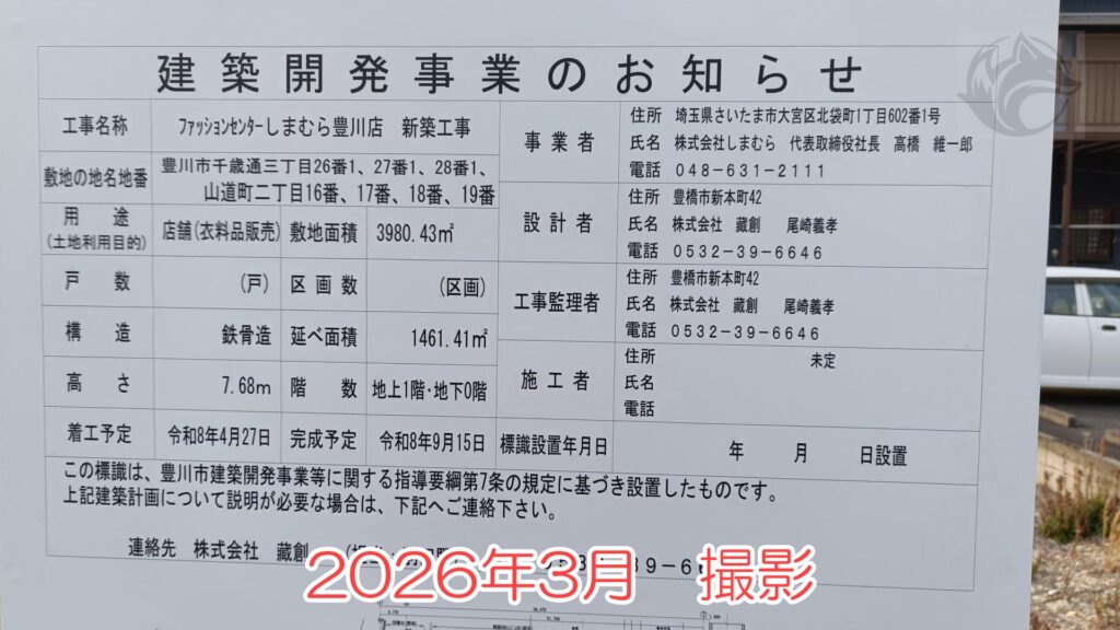 【しまむら豊川店、移転か?】出店場所が分かったけど、現店舗と近いから移転じゃないかな…。