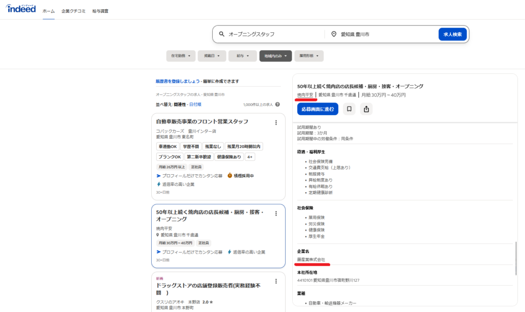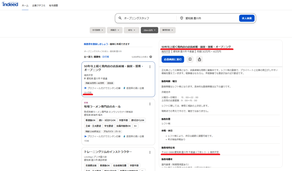 ちょっと何でか分からないけど、閉店後の2026年4月に、求人サイトindeedに「焼肉 平安」の求人情報が載ってたんだよね…。