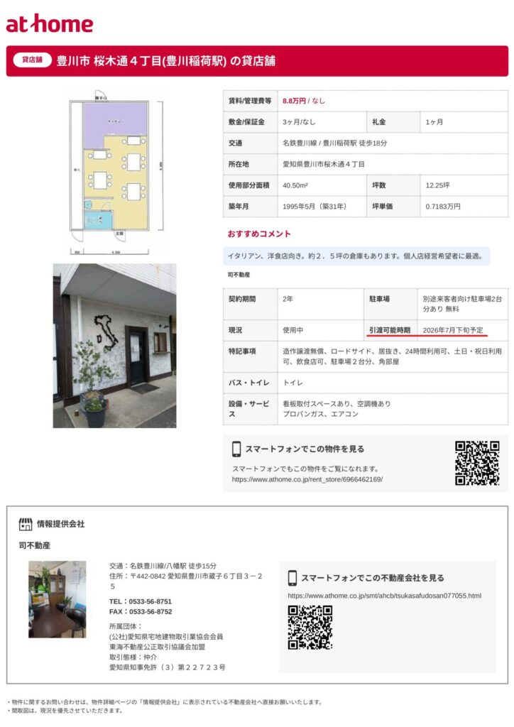 まさに「イチトサンブンノイチ」と同じで、たまたまアットホームのテナント募集を見てたら出てきたんです…。