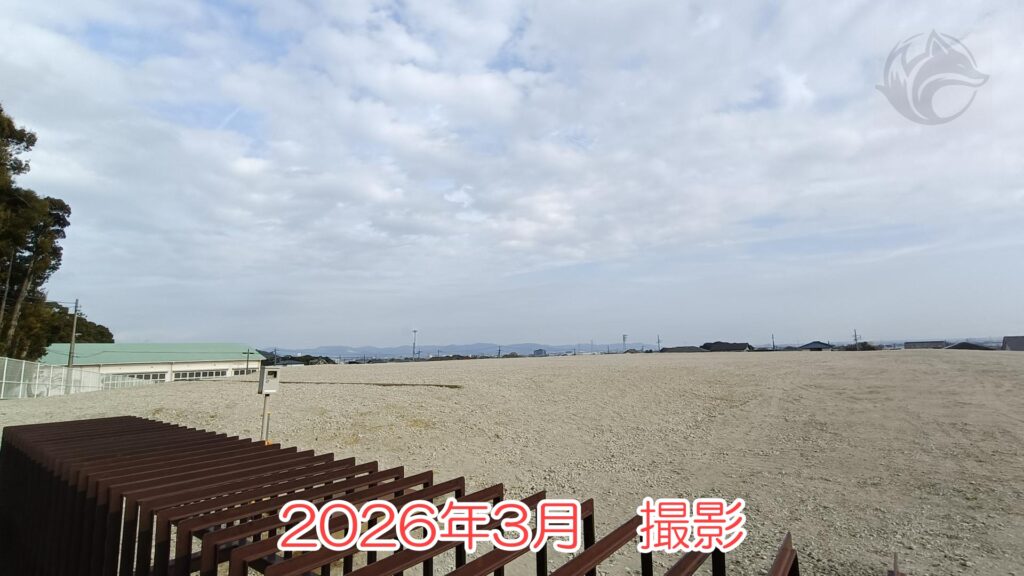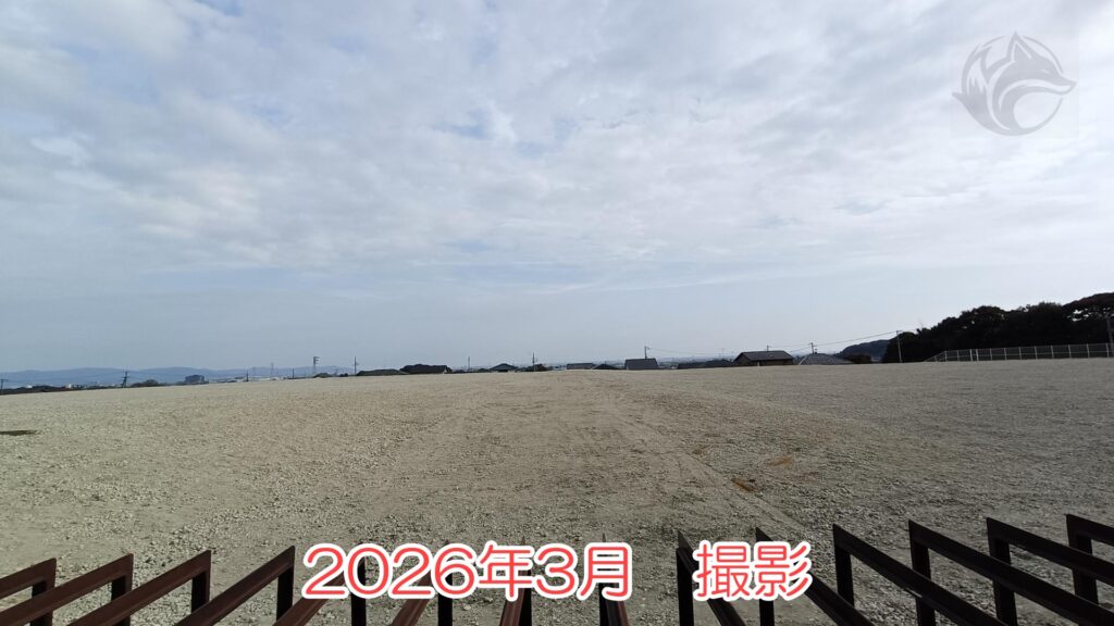 めっちゃ広い敷地に「コニカミノルタ大宝山寮」があって、それを全部解体してたんですが、2026年3月下旬時点でこうなりました。